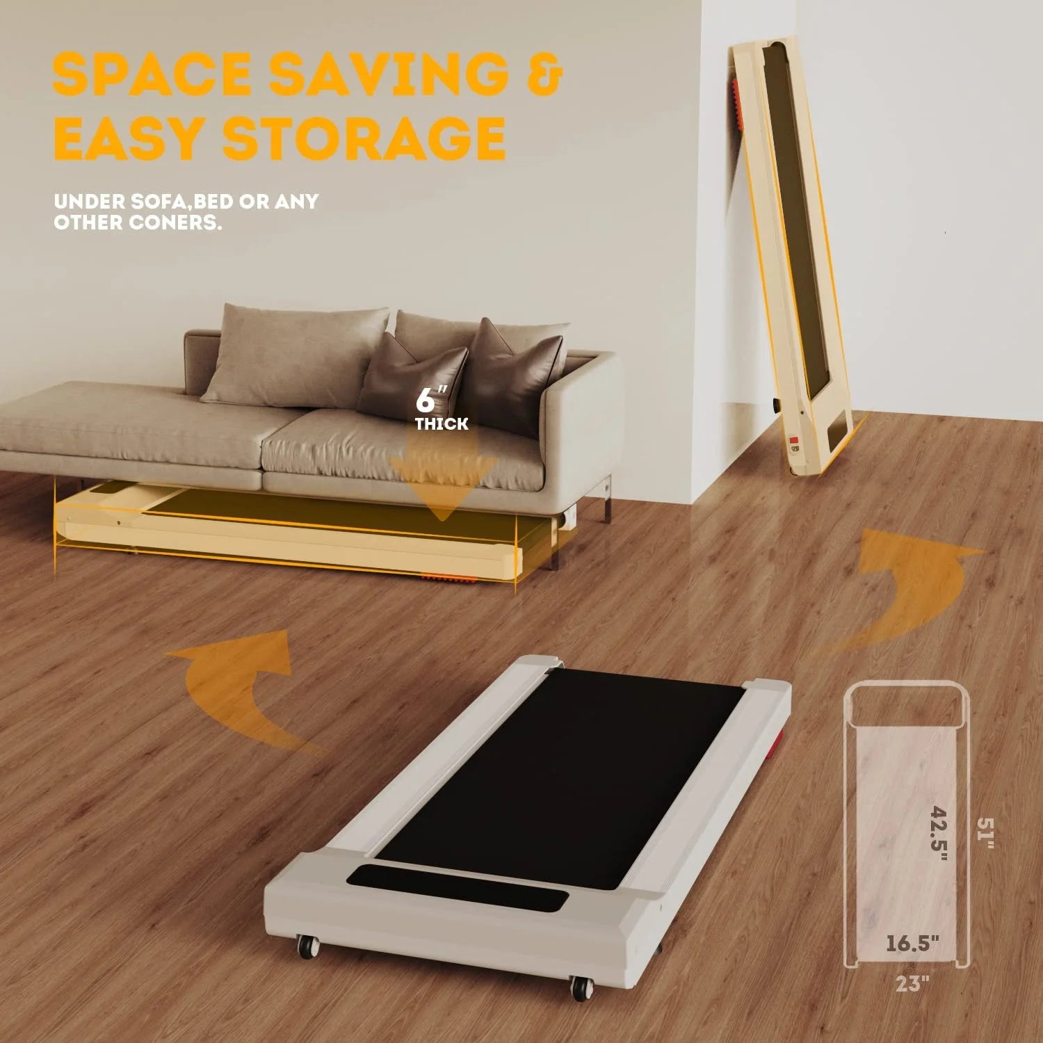 - 【COMPACT and SPACE-SAVING DESIGN】: Bifanuo under desk treadmill is only 6 inches thick and weighs 54lbs, which can be easily stored under your bed or sofa with two transport wheels. Whether it's in your office or your bedroom, you'll find a place for it, as it takes up no more than 8 sq. ft.