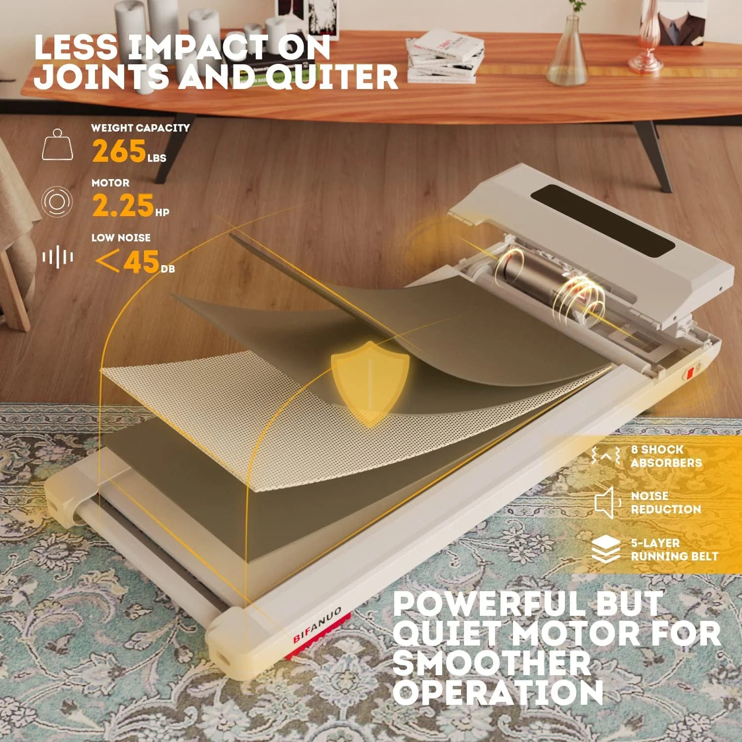Bifanuo Under Desk Treadmill, Walking Pad 2.25HP, Walking Treadmill with 265lbs Weight Capacity, for Office Under Desk with Remote Control, Walking Jogging Machine for Home/Office Use