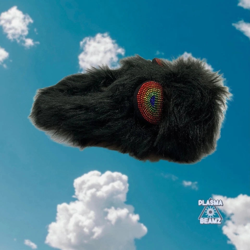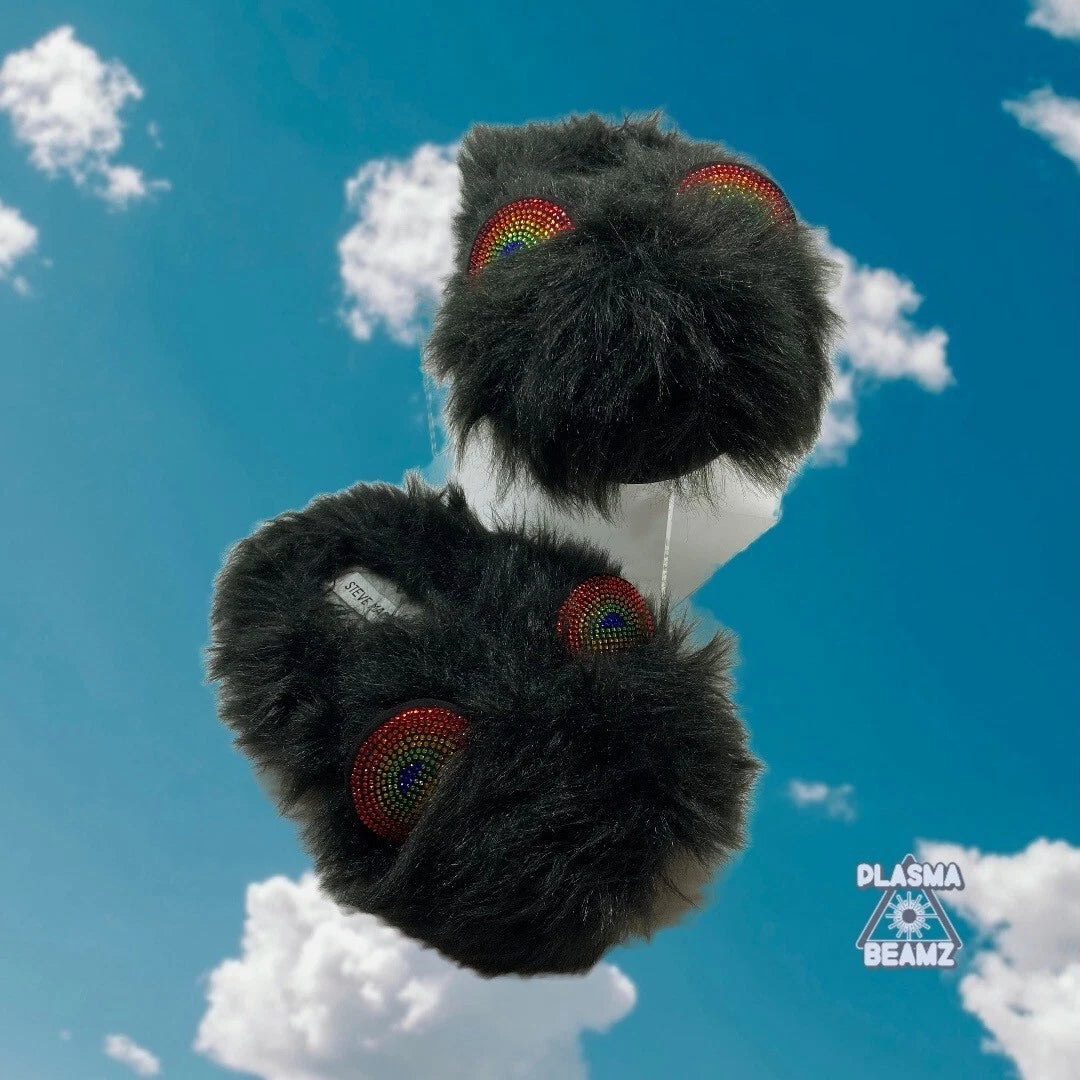 Black Furry Rainbow Pride Rhinestone Steve Madden Slippers - Size Med