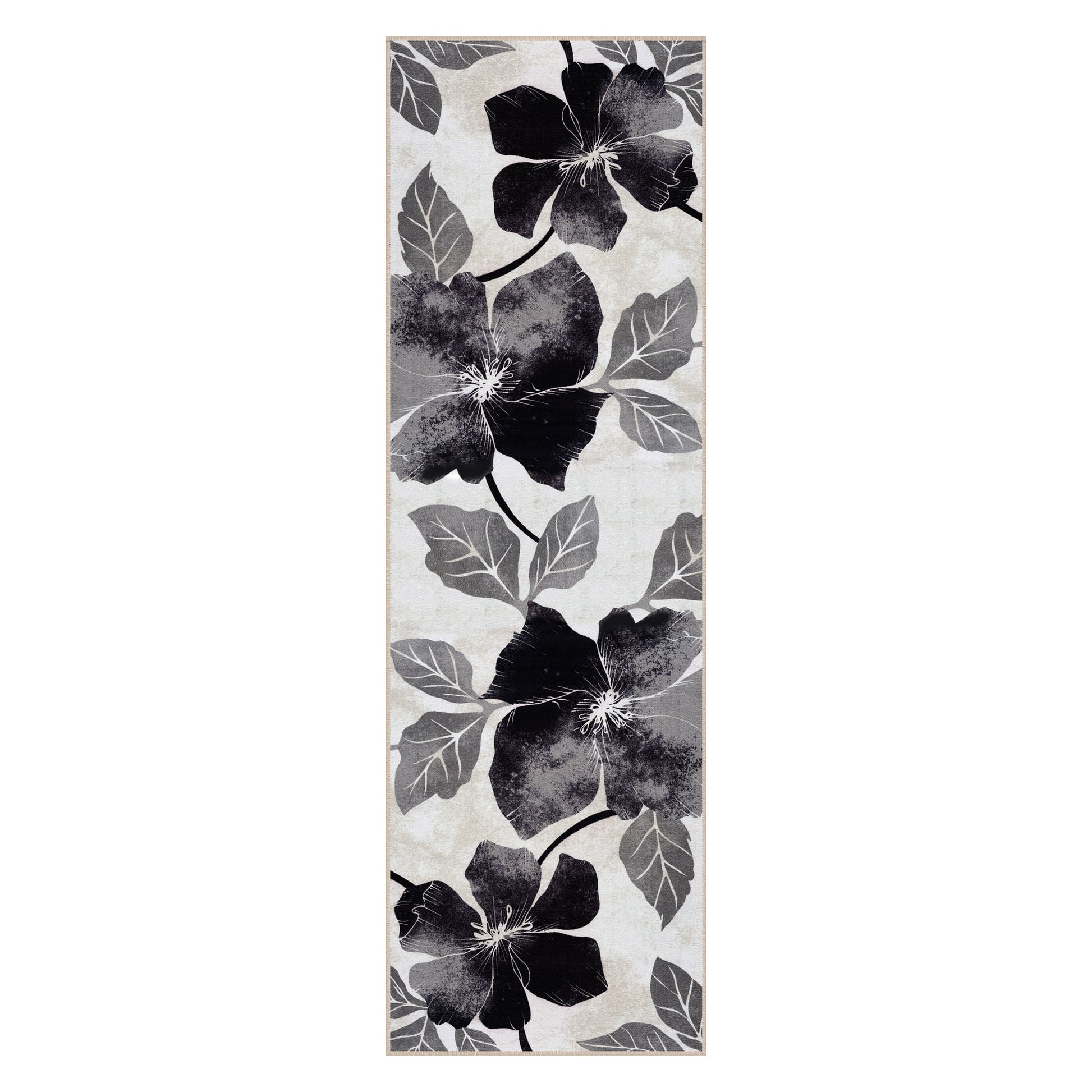 CAMILSON Solana Non Slip Modern Floral Indoor Area Rug Black/Grey 2'.2"x7