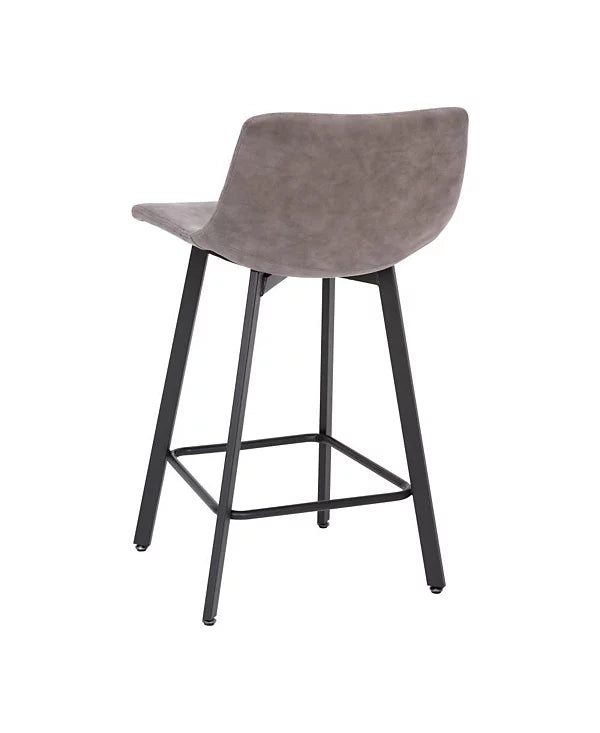 Get acquainted with these well-composed bar stools that exemplify mid-century modern style and 21st century functionality. The fashionable low back, armless design with a faux leather upholstered contoured bucket seat is exceptionally comfortable, with a minimalist profile that works well on its own or with other home furniture. Iron framing with an integrated footrest is as stylish as it is strong. For easy upkeep, simply wipe with a dry cloth when needed . Plastic glides on the legs protect home flooring, adding an additional element of utility to the already practical design.