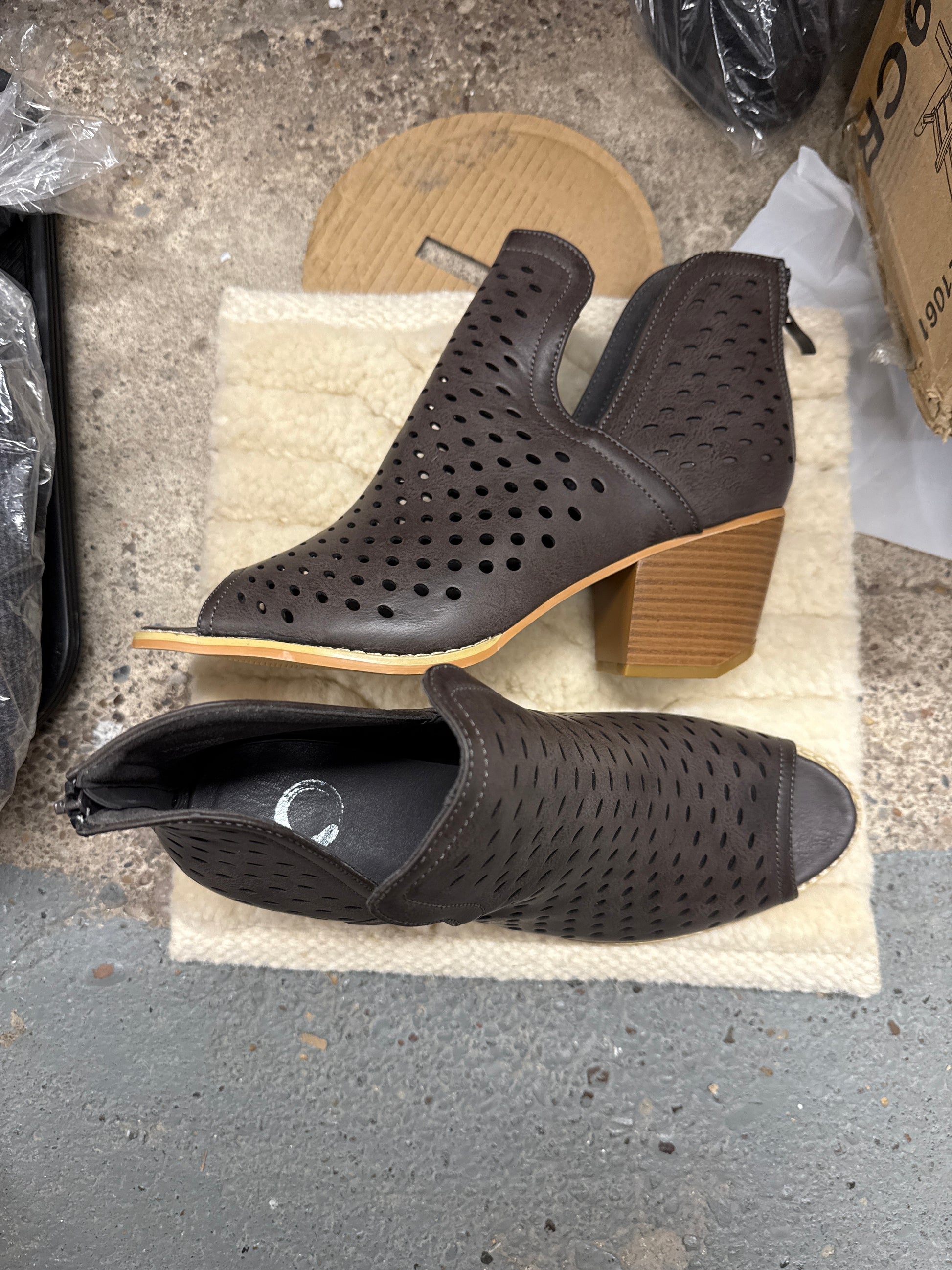 Journee Collection Perforated Peep-Toe Ankle Boots size 11 women, chocolate brown